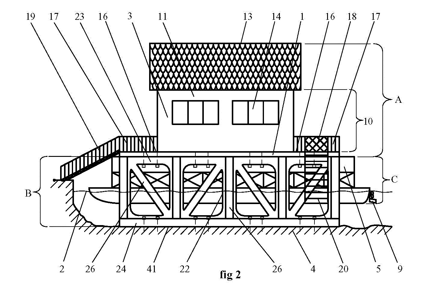 The CasaYacht Yacht Homes can also float and navigate on their time-shared removable floating docks with variable buoyancy, being tugged, or under their own propulsion. |